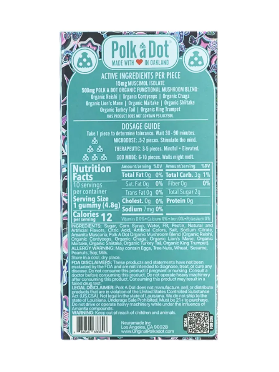 Whimsical Flavor Harmony: Blue Cotton Candy PolkaDot Magic Mushroom Belgian Magic Blend Gummies orchestrates a harmonious blend where the sweetness of blue cotton candy intertwines with the decadence of Belgian taste, creating a whimsical symphony on your palate.