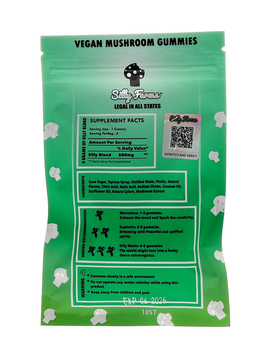 Melon Silly Farms Vegan Mushroom Gummies offer a unique blend of refreshing melon flavors combined with powerful effects. Perfect for those looking to enhance their mood, boost creativity, or embark on an uplifting journey. These gummies are designed to be consumed in a safe environment, ensuring a pleasant and controlled experience.