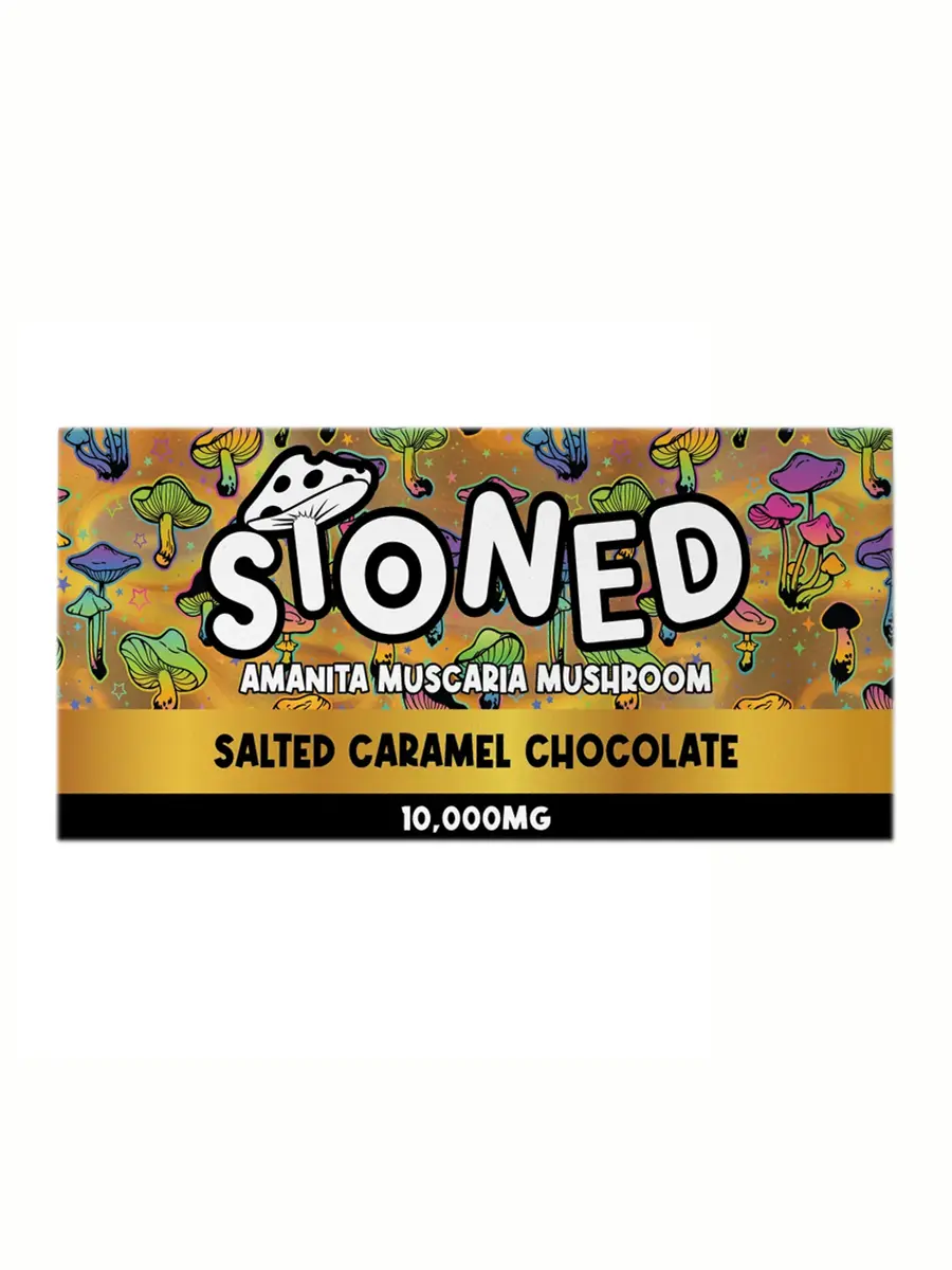 Indulge in the luxurious flavor of Salted Caramel Chocolate Stoned Amanita Muscaria Mushroom Chocolate while exploring its unique blend of ingredients. Each bar is designed to deliver a delicious experience with potential effects that may vary based on individual tolerance and dosage. Please consume responsibly and consider the allergen information provided before enjoying this sweet treat.