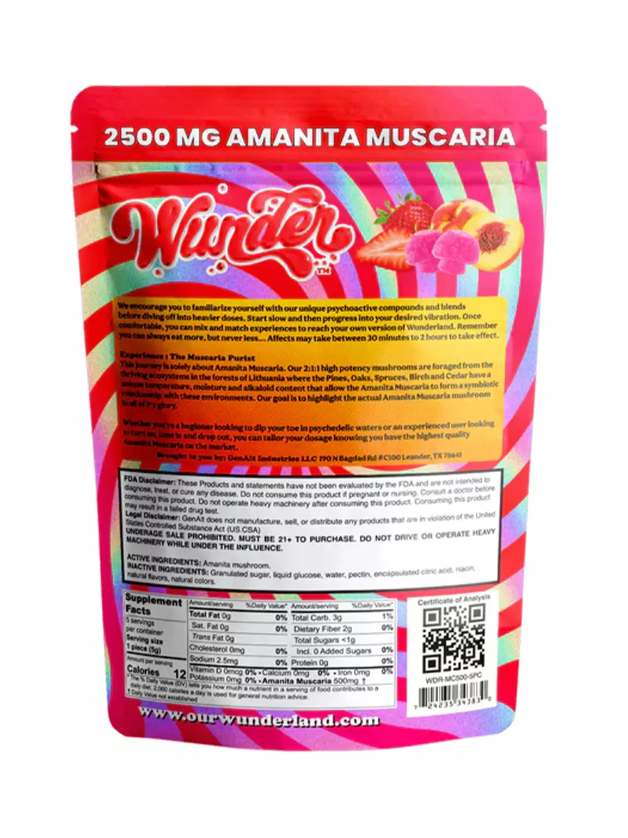 Strawberry Nectarine Wunder Amanita Muscaria Mushroom + Kava Gummies 2500mg