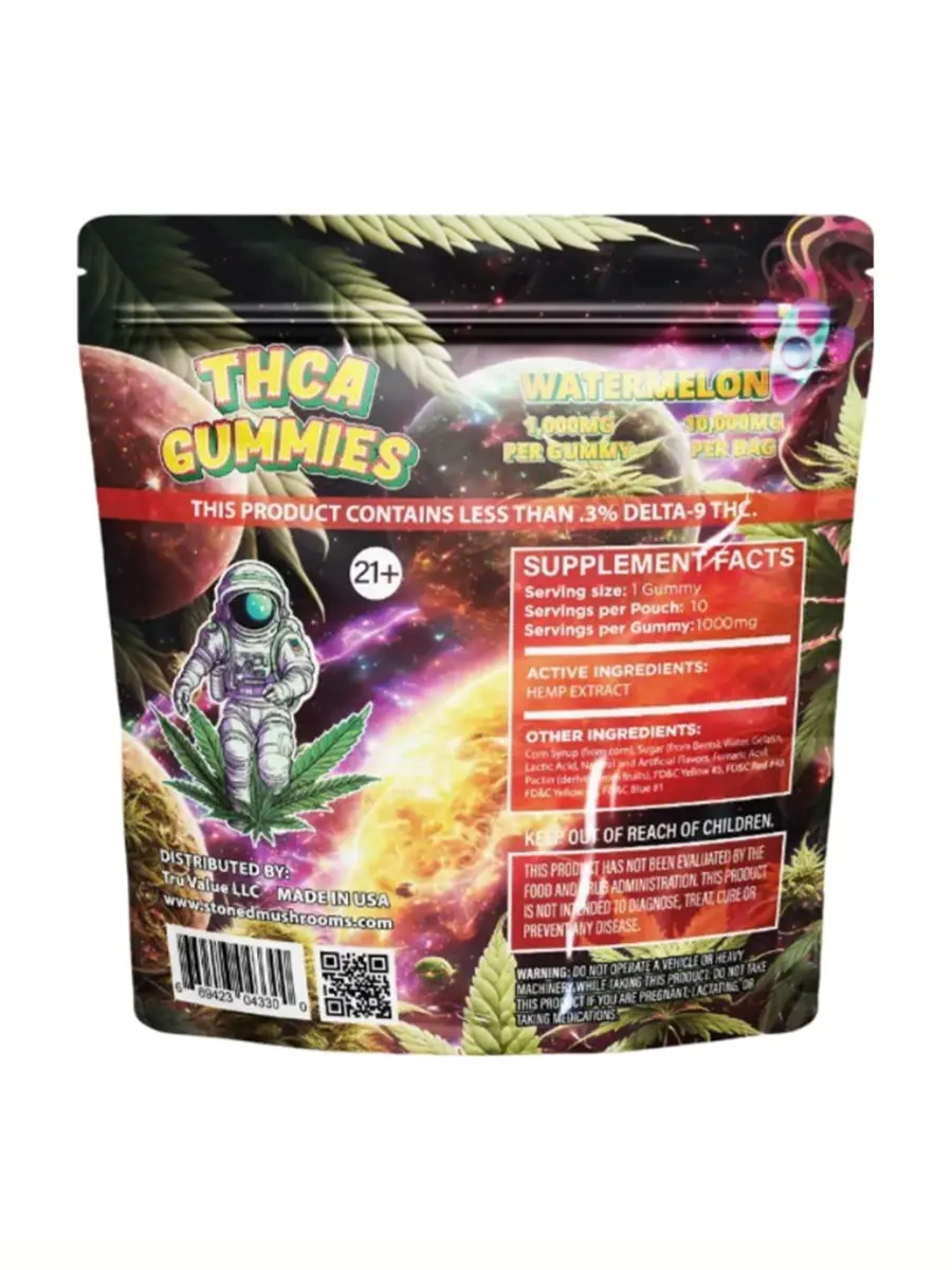 Watermelon Stoned THC-A Gummies offer a high-potency THC-A experience in a delicious watermelon flavor. Perfect for those looking to explore the unique effects of THC-A, these gummies are designed to provide a flavorful and potent experience. Remember to consult with a medical professional before use, especially if it’s your first time using this type of product. Enjoy the journey with Watermelon Stoned THC-A Gummies from Stoned Mushrooms Brand!